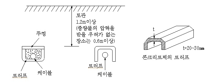 3. 전기설비기술기준의 판단기준 제136조 제4항에는 "~~~ 또한 지중 전선용 견고한 트라프 또는 기타 방호물에
